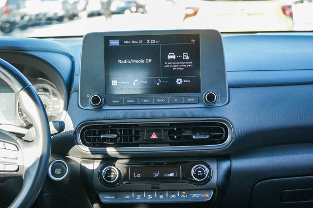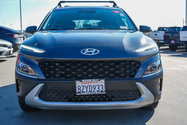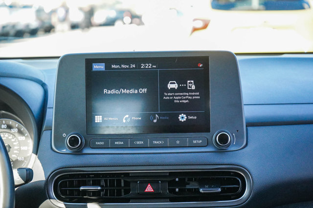 The 2022 Hyundai Kona SEL is a compact SUV that impresses with its blend of style, technology, and safety features. This model comes with two available packages: *Cargo Package* and *Option Group 01*, enhancing its functionality and convenience.Under the hood, the Kona SEL is powered by a Nu 2L I-4 DOHC engine, delivering a robust 147 horsepower paired with a Smartstream IVT CVT transmission. This combination not only ensures a smooth driving experience but also contributes to impressive fuel efficiency, making it ideal for both city commutes and weekend adventures.One of the standout features of the 2022 Hyundai Kona SEL is its Smart device mirroring capability. This feature allows drivers to seamlessly integrate their smartphones with the vehicles infotainment system, providing easy access to navigation, music, and more all while keeping your focus on the road. This convenience is complemented by the advanced hands-on steering assist/lane centering technology, which acts as a co-pilot during long drives, maintaining speed and safe distances from other vehicles.Safety is a top priority in the Kona SEL, highlighted by the front pedestrian impact prevention system. This technology constantly monitors the road ahead for pedestrians, taking proactive measures to avoid potential collisions, enhancing the safety of both drivers and pedestrians alike. Additional safety features such as brake assist and forward collision mitigation further ensure that you can drive with confidence, knowing that the Kona is equipped to handle unexpected situations.The 2022 Hyundai Kona SEL also boasts conveniences like a proximity key with keyless entry and push-button start, making it easier than ever to get in and go. The active blind spot system adds an extra layer of security by alerting drivers to vehicles in their blind spots, helping to prevent accidents during lane changes.Moreover, the driver attention monitor keeps an eye on your behavior behind the wheel, alerting you if it senses drowsiness or distraction, ensuring you stay focused on the road. With features like lane departure prevention and cruise control with steering wheel mounted controls, the Kona SEL offers a driving experience that balances enjoyment with safety.In conclusion, the 2022 Hyundai Kona SEL is a well-rounded vehicle that caters to modern drivers needs, offering a perfect mix of technology, safety, and convenience. Whether opting for the *Cargo Package* or the *Option Group 01*, youre sure to appreciate the thoughtful design and advanced features that make every journey enjoyable.We want your trade in, even if you don't buy our vehicle. Call us today for a complimentary appraisal or Kelly Blue Book Instant Cash Offer.